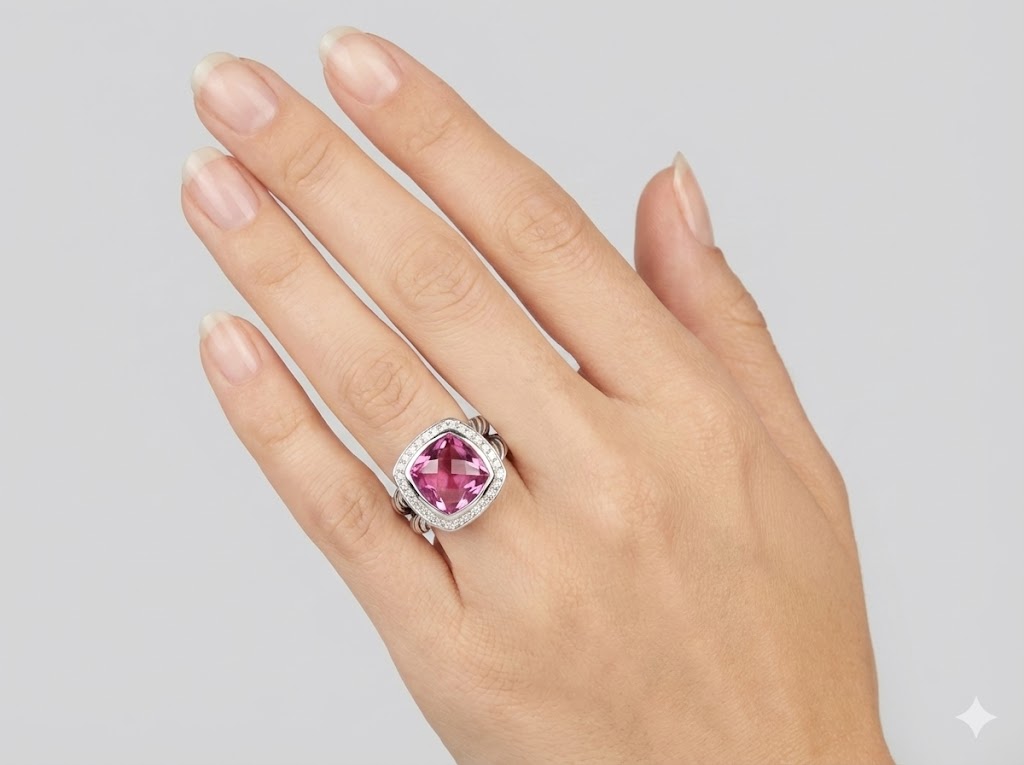 Bellara Sterling Silver, Pink Turmaline & Diamonds Ring